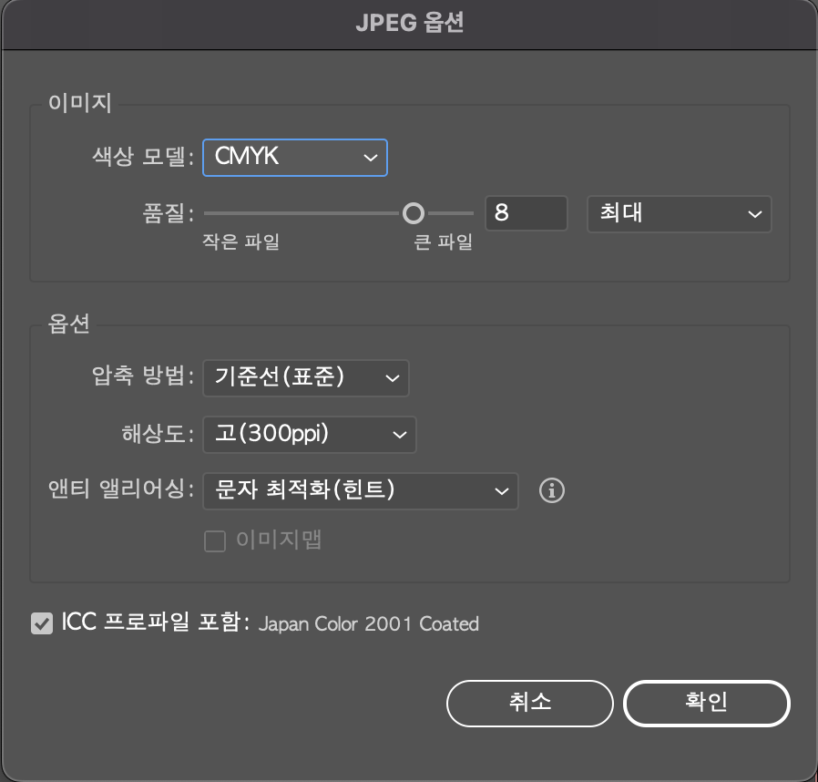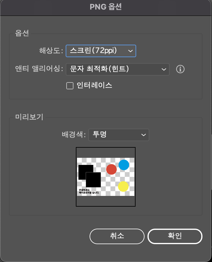 - 체크 x : 체크하지 않는다면 파일에 작업된 그래픽 그대로 설정한 포맷으로 저장이 됩니다.