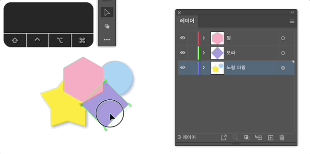 선택한 오브젝트를 하위 레이어로 만들어줍니다. 같은 레이어에 있는 오브젝트만 선택할 수 있습니다.