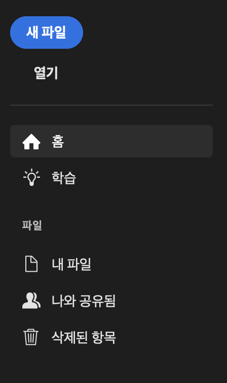 - 내 파일 : 크리에이티브 클라우드에 저장된 파일입니다.