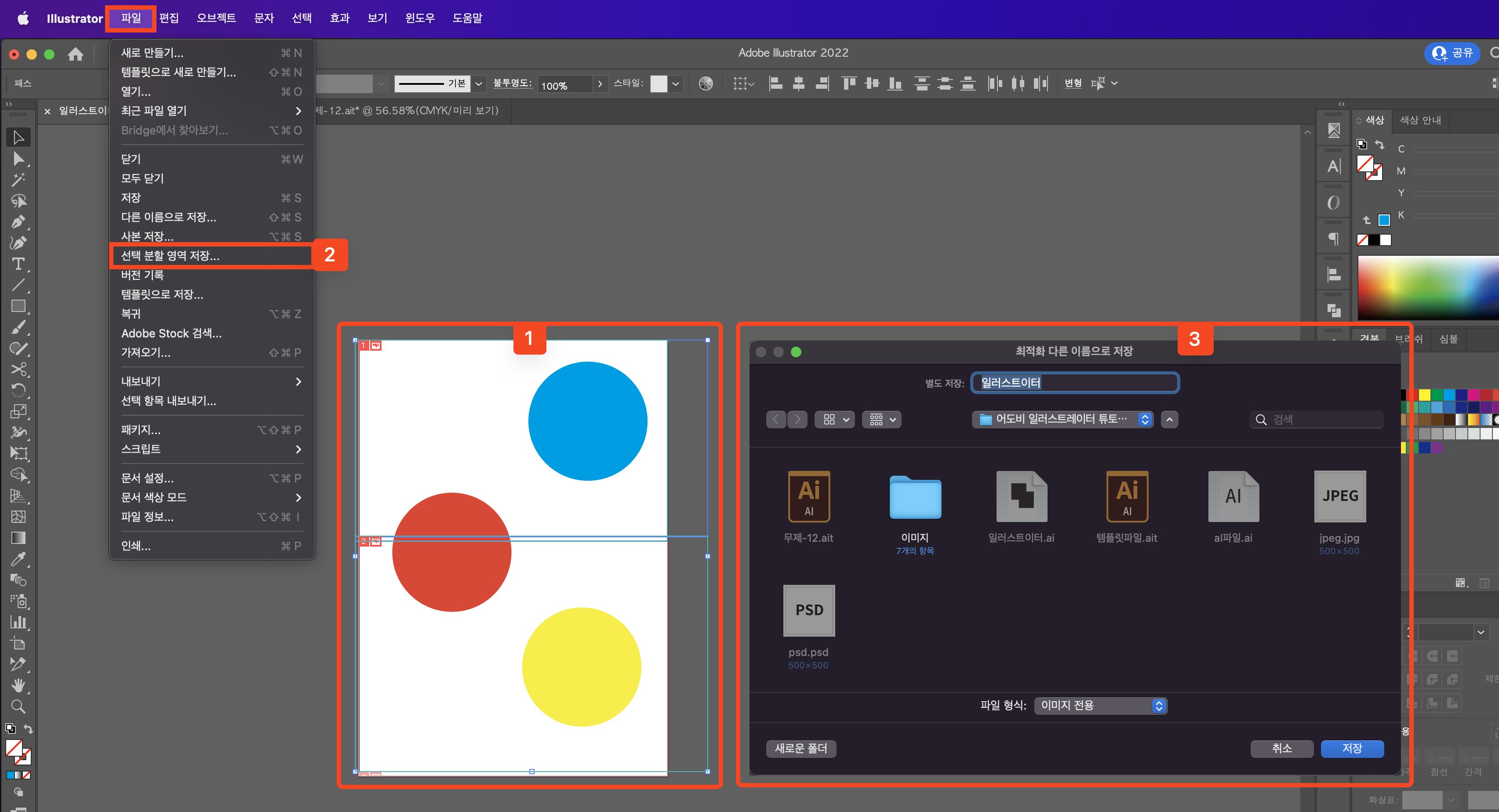 어도비 일러스트레이터 선택 분할 영역 저장