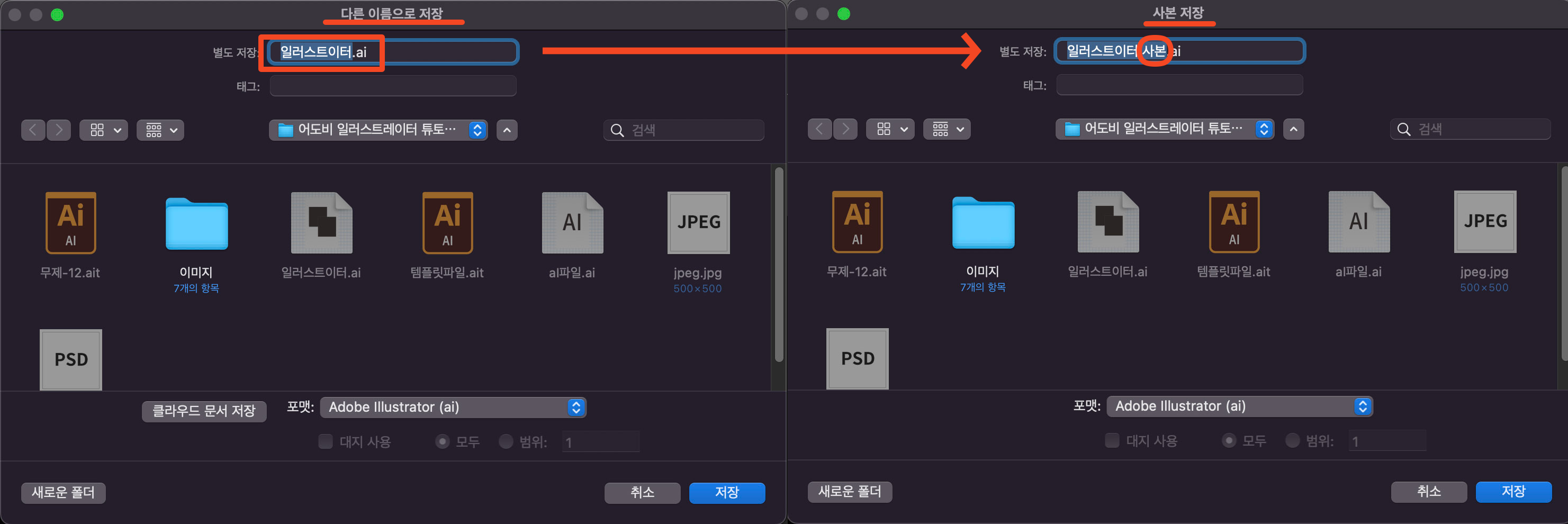 어도비 일러스트레이터 다른 이름으로 저장