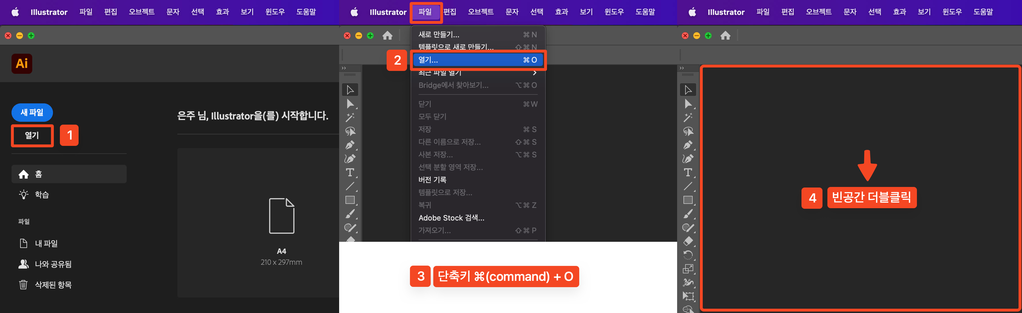 어도비 일러스트레이터 파일 열기 후 추가 열기 방법