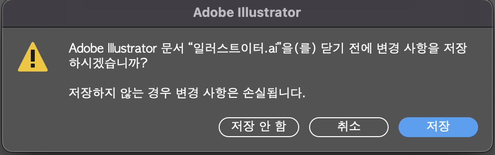 맥(mac) | 상단 메뉴 illustrator > illustrator종료( ⌘(command) + Q )
