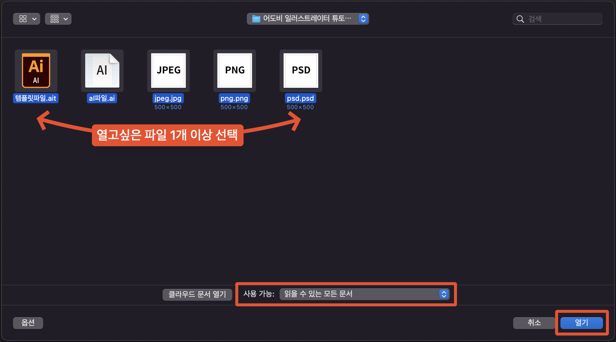 일러스트레이터에서 열 수 있는 확장자 확인 ⌵