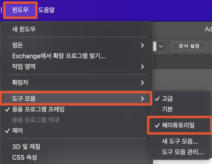 Adobe 일러스트레이터_도구모음(상단메뉴 윈도우)